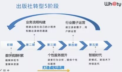 张总认为,出版社转型将以创建虚拟品牌为目标,经历五个发展阶段:数字资源积累—业务流程构建—个性服务提升—行业圈子运营—智能时代,而新技术和新环境下,曾经做过的业务都将重新做一遍,这将为出版社发展带来新的机遇。