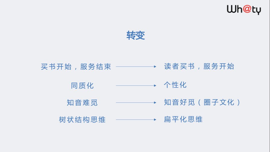 在中心化和去中心化中迭代升级,以版权为中心的出版物,正在转向以用户为中心的出版物,如选择大流量的网红书籍作为入口,基于图书的载体搭建用户平台,并提供更多的优质增值服务;