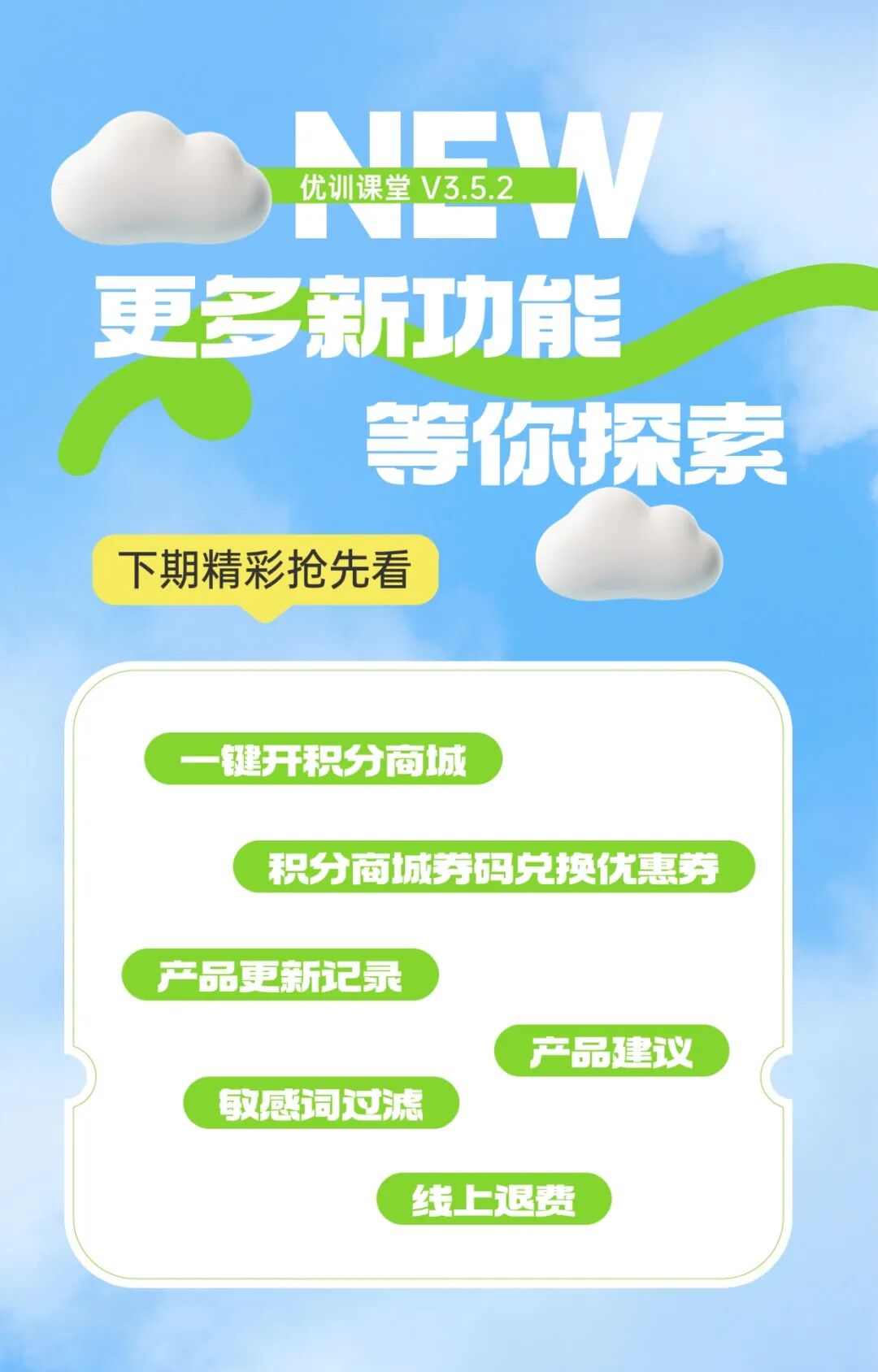 我们希望,优训课堂3.5.2版本能为您的培训管理工作带来更多便利与惊喜。
