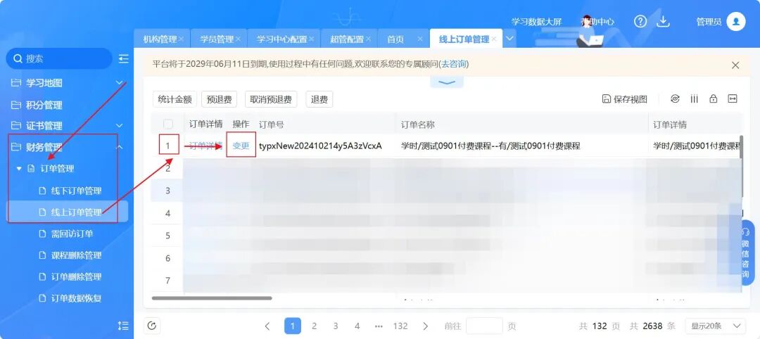 面对学员误买课程或班级的情况,我们推出了自主换课换班功能。管理员只需在管理端轻松点击“变更”,即可快速更换订单内商品,无需复杂流程。无论是班级变更为课程,还是课程之间的互换,只要金额一致,一切尽在掌握!