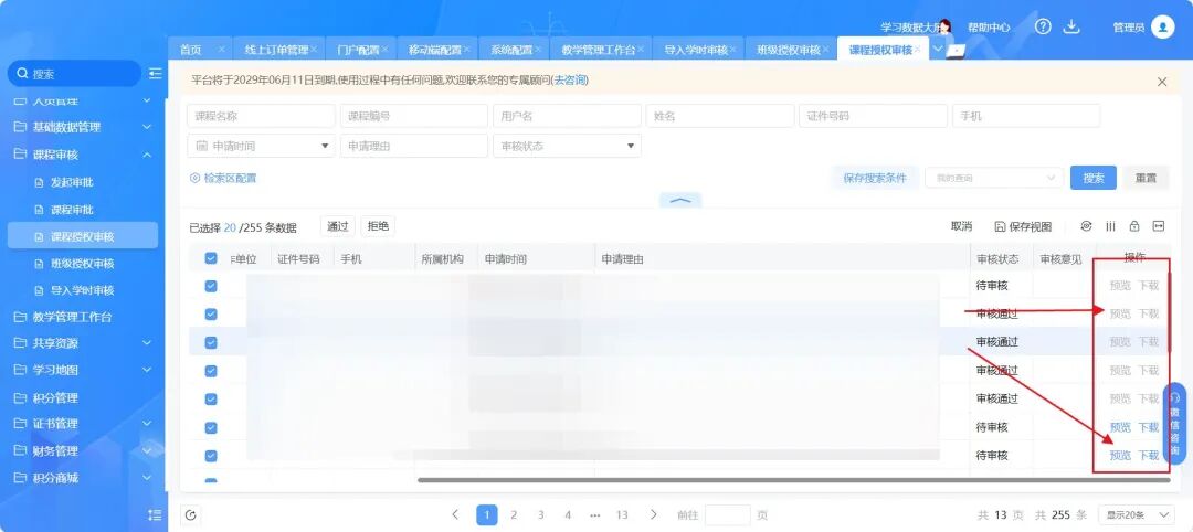课程或班级的报名审核不再繁琐!我们升级了报名审核功能,学员在申请授权时,需上传相关资料并补充描述。管理员则可在管理端设置需要提交报名材料的课程或班级,并便捷查看、审核学员提交的信息。这一功能将大大提升报名管理的效率和准确性。