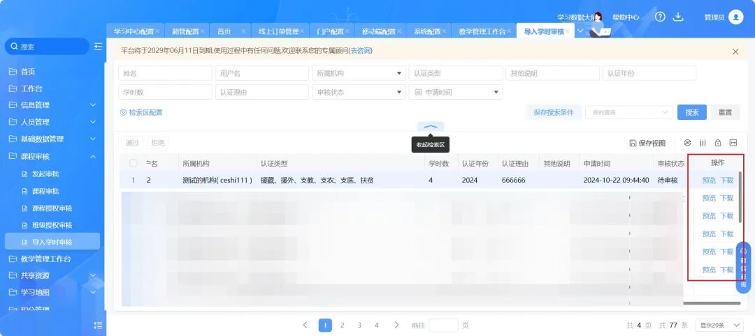 为支持学员认证非平台学时信息,我们精心打造了学时认证系统。学员可在学习中心提交认证信息,包括认证年份、学时数、认证类别等,并上传相关证明材料。管理员则可在管理端便捷审核,确保学时信息的真实性和准确性。