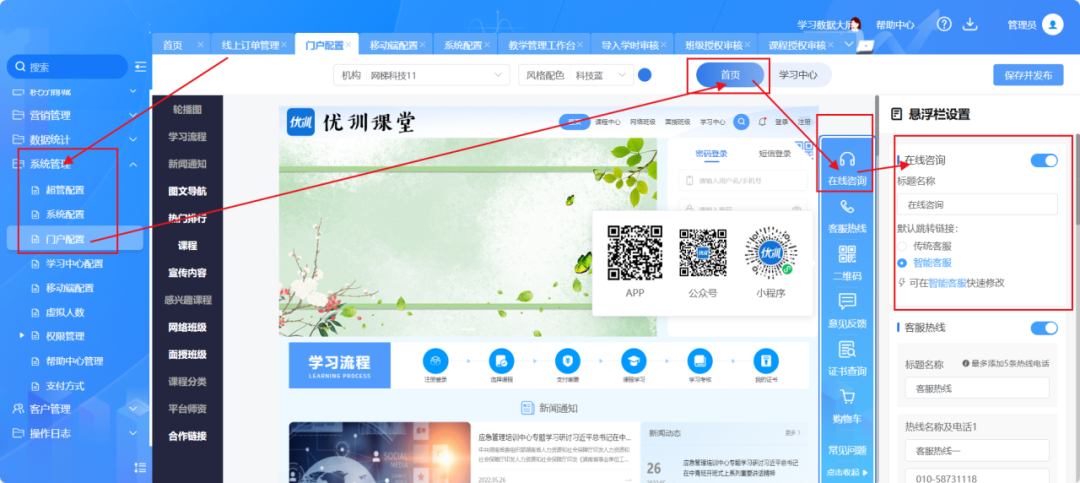 传统客服运营成本高昂且回答效果有限?我们引入了智能客服系统!管理员可在管理端快速配置智能客服,学员在咨询时,将优先获得知识库内的智能回答。如遇知识库外问题,学员还可选择联系人工客服,确保问题得到及时解决。