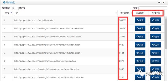用户访问网站的路径分析,可以查看任意页面的来源路径和去向路径统计