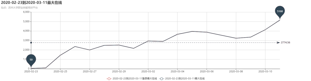 平台在线人数统计 随着平台学习活跃人数的增长,在线人数方面同样呈增长态势。最大值达到了(5168人),在应对瞬间并发上,网梯公司通过运维监控报警等措施保证平台稳定。