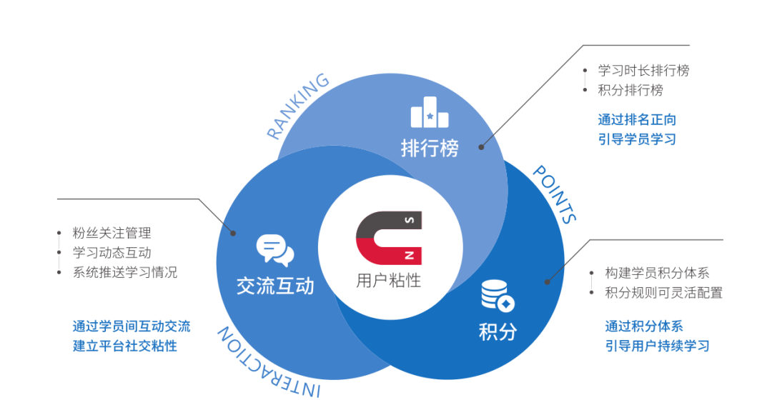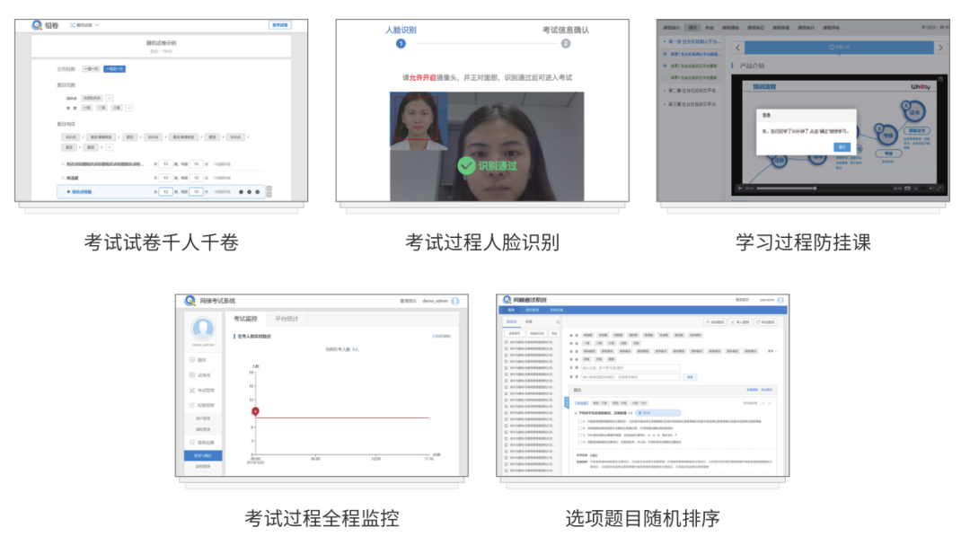 线上培训不同于线下培训,由于无法面对面的进行授课与交流,所以培训效果究竟如何往往成为培训组织方担心的最大问题。 优训课堂为了保障平台内培训的效果得到保障,采用了两套组合拳联手出击,通过主动学习及被动考核两种方式,让培训效果可控。 ●主动学习——提升用户粘性 ●被动考核——试卷考核,防止作弊。