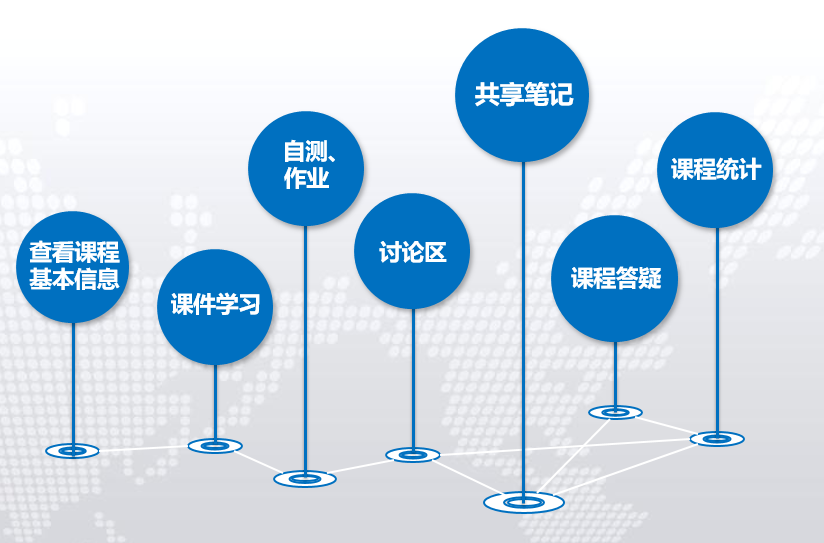 为提升专技人员继续教育的培训效果,网梯公司为平台提供了多样化的教学功能。包括:课程信息查看、课件学习、自测作业、课程讨论、共享笔记、课程答疑、课程统计等。