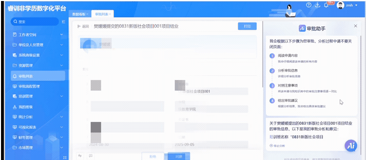 以AI智能审批为例,借助先进大模型的自然语言理解和智能推理能力,使得审批流程更加高效。系统可以在审批过程中自动分析和理解审批信息,学习审批人习惯与风格,并基于数据分析提供精准的审批建议。通过深度挖掘审批过程中的潜在问题,帮助审批人员迅速定位关键内容,将精力集中于少数有疑问的环节,大幅提高审批效率,确保管理的精确与高效。