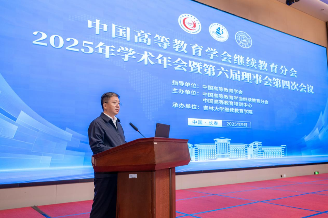 2025年9月17-19日,由中国高等教育学会指导、中国高等教育学会继续教育分会和中国高等教育培训中心主办、吉林大学继续教育学院承办的“中国高等教育学会继续教育分会2025年学术年会暨第六届理事会第四次会议”在吉林长春成功举办。中国高等教育学会副会长、中国高等教育培训中心主任姜恩来,吉林省教育厅一级巡视员刘学军,吉林大学党委常委、副校长张国兴,中国高等教育学会继续教育分会理事长、北京大学继续教育部部长张西峰,吉林省教育厅职业与成人教育处处长杜颗亮出席年会开幕式,教育部职业教育与成人教育司高等继续教育处副处长徐璐通过视频方式致辞。开幕式由中国高等教育学会继续教育分会秘书长刘广送主持。