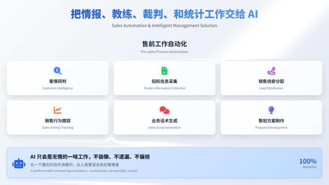 在售前岗位,AI已经接过了“情报员、教练、裁判、统计员”的角色。