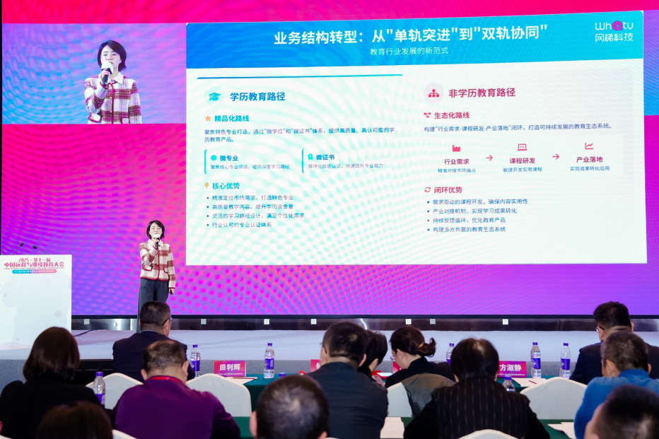 10月30日上午,网梯科技终身教育事业部总监王佳静在高校非学历教育发展论坛带来《从“成本中心”到“增长引擎”:新数字化平台如何重塑非学历教育价值与生态》主题分享。