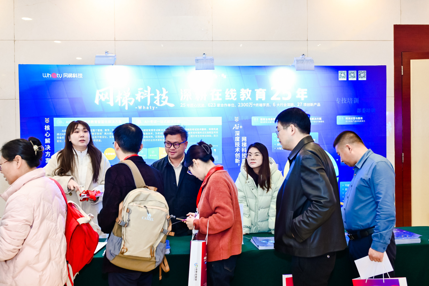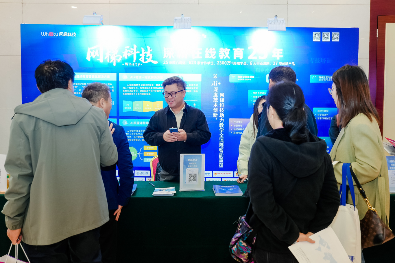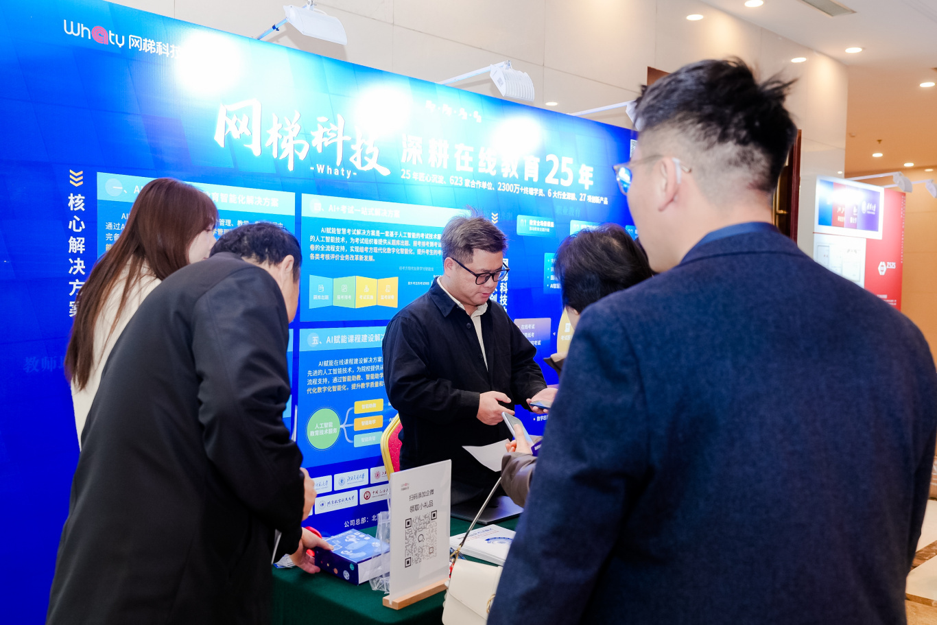 展会上,网梯为来访老师积极展示和介绍人工智能培训、信息化考试服务、学历继续教育综合解决方案、非学历数字化教育平台等解决方案和项目信息。网梯细致的讲解与高质量的服务,为大会增添了别样的色彩。