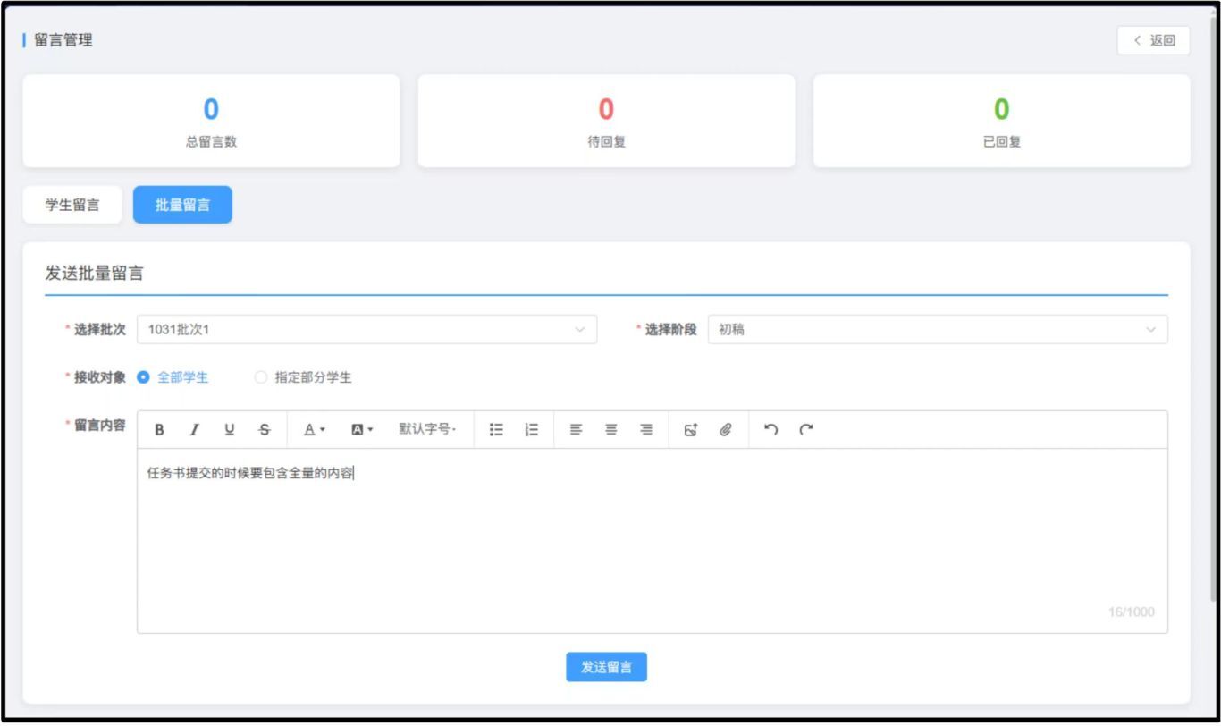 新增双向留言板功能,教师可批量发送通知,并查看自己的留言与学生回复,针对性回复学生疑问。