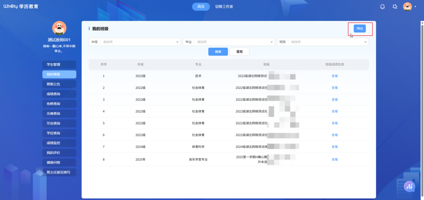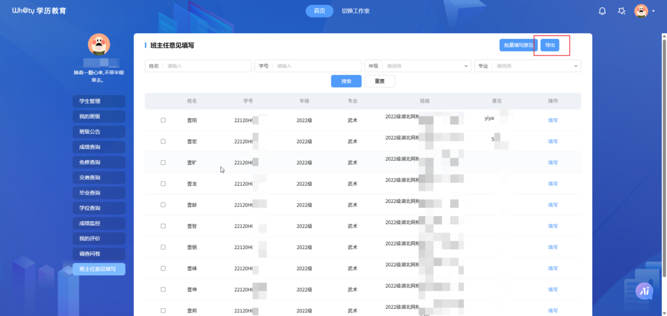 意见填写、班级管理等数据一键导出,无需手动统计。
