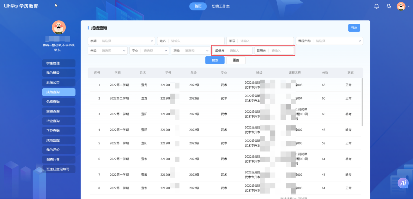 输入最低分和最高分,快速定位目标学生,成绩查询更高效。