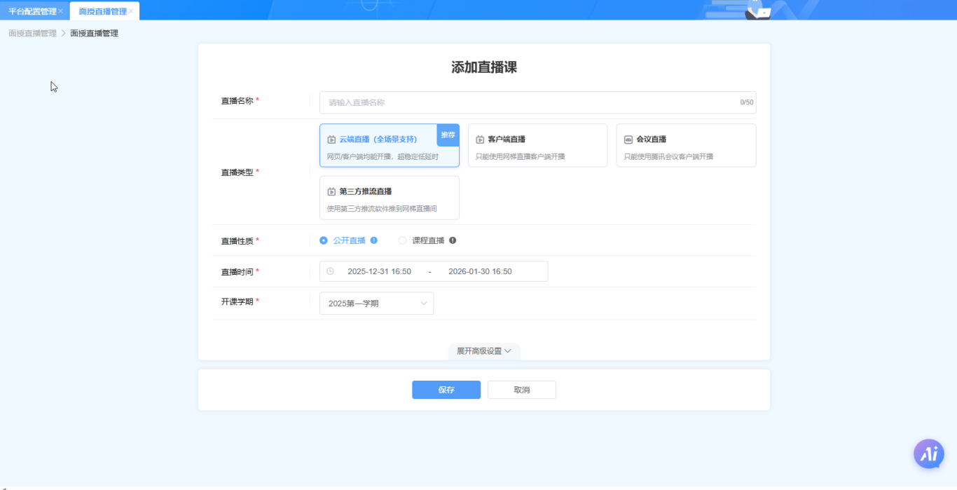 云端、客户端、腾讯会议等直播类型明确区分,按需选择更便捷。