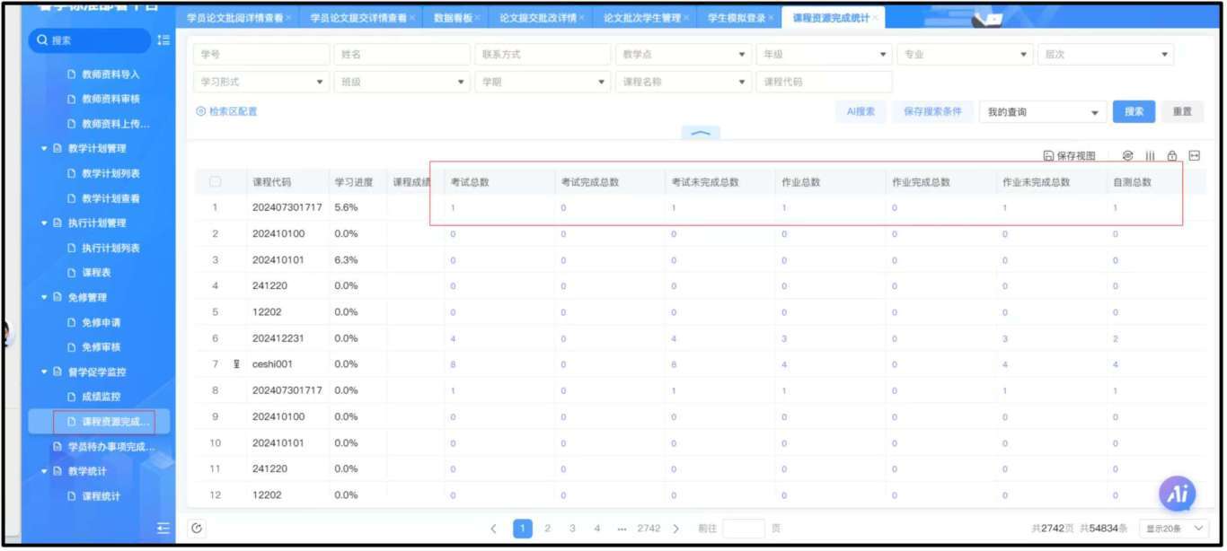 支持点击二级页面查看具体的节点完成情况,考试、作业等完成数据直观呈现,进度监控一目了然。