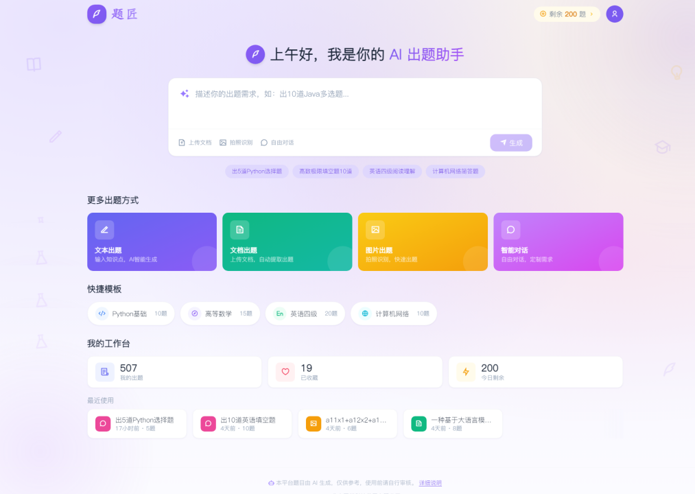 题匠是一款 AI 驱动的智能出题平台,点指之间,好题纷至。